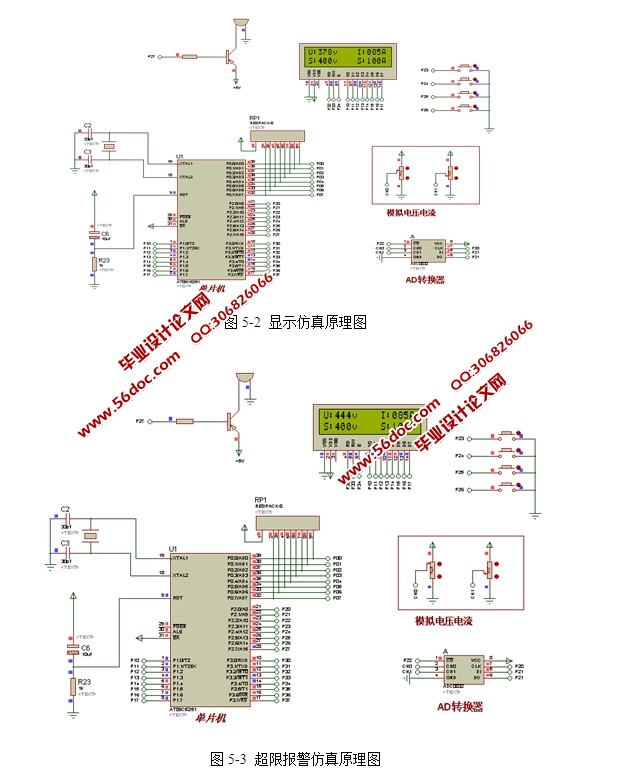 本系统使用电压、电流变送器,结合ADC0832芯片及LCD1602液晶模块,通过STC89C52单片机进行控制,具体研究和设计了一款单相电气参数测量仪。 相对于传统的单相电参数测量仪,它具有精度高、可靠性强、功能强大及智能化等诸多优点。本测量仪表可以实时、准确测量交流电压和电流的有效值,并可通过按键设置电压、电流的报警上限值,当采集值大于设置上限值时,能够进行实时的报警。测量参数值可以液晶屏进行实时的显示。 经过仿真验证,本设计的实能够实现实时的交流电压采集、交流电流采集、电压和电流的报警上限设置和超限报警等功能。研究、设计此类仪表有利于减少企业、工厂及家庭用电浪费,更好的节约资源、保护环境,从而真正实现环境友好型社会。