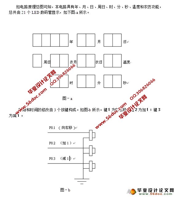 综上所述此万年历具有读取方便、显示直观、功能多样、电路简洁、成本低廉等诸多优点,符合电子仪器仪表的发展趋势,具有广阔的市场前景。