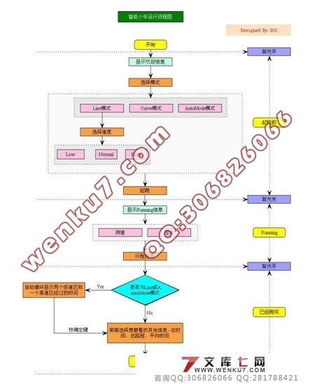 (3)自动型:小车先以一定的速度走完全程,之后再以一定的速度倒退回起点,再调整速度在一定的时间内走完全程。走完后LCD显示的内容与直线型显示的内容一样。