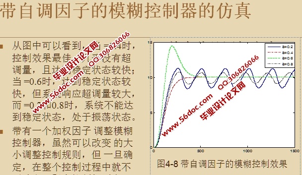 第四章加热炉温度控制仿真,针对联合站原油加热炉的数学模型,设计了单输入模糊控制器、双输入模糊控制器和带自调因子的模糊控制器,并进行了基于matlab矩阵实验室的实验仿真,设计模糊控制器时,各参数的设定并不是根据被控对象的数学模型来确定,由此说明模糊控制对被控对象的非线性和时变性具有一定的适应能力即鲁棒性较好的特点。