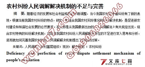 农村纠纷人民调解解决机制的不足与完善(附答辩记录)