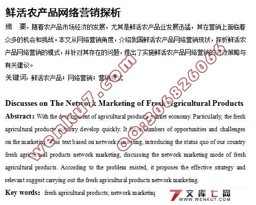 六、开展鲜活农产品网络营销的策略………………………………………………14