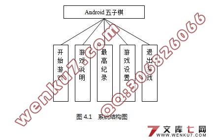 五子棋分为五个模块:开始游戏、游戏说明、最高纪录、游戏设置、退出游戏。