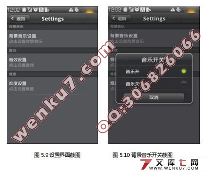 ①.音效设置:开启/关闭音效、背景音乐的开/关。