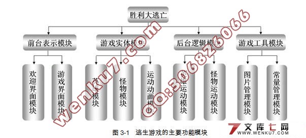 根据逃生游戏的主要功能模块图可以得到游戏的具体功能: