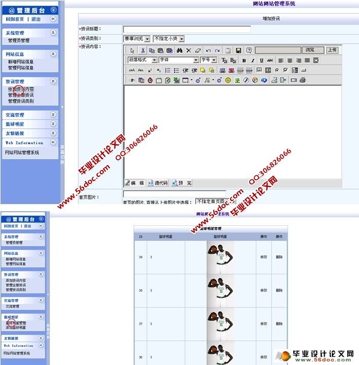 篮球俱乐部新闻网站系统的设计与实现(ASP,Access)(含录像)