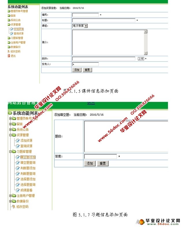网络课程网站的设计与实现(ASP,Access)(含录像) 来源:wenku7.com 资料编号:WK714537 资料等级:★★★★★ %E8%B5%84%E6%96%99%E7%BC%96%E5%8F%B7%EF%BC%9AWK714537 以下是资料介绍,如需要完整的请充值下载。 1.无需注册登录,支付后按照提示操作即可获取该资料. 2.资料以网页介绍的为准,下载后不会有水印.资料仅供学习参考之用. 密 保 惠 帮助 我要下载该资源 资料介绍 网络课程网站的设计与实现(ASP,Access)(含录像)(毕业论文11800字,程序代码,Access数据库) 通过前期的调查分析及研究,对本系统来说,有管理员、习题两种类型,其功能主要有以下一些方面。 1)管理员要求能查看和修改习题信息 、删除习题信息。实现对习题信息增删改,能在信息公布栏发布消息并能修改或删除,党建、人事、财政可以发布信息、文件并能下载和删除以及修改,管理员负责录入习题工资 ,还有课表,也能进行修改。收发邮件,下载系统使用说明书。个人密码的修改 2)习题功能:收发邮件,写习题日志 ,录入修改成绩, 调停课 ,查看课表 ,课程时间,下载系统使用说明书,查看自己的工资和个人信息,修改个人密码。 3)习题和管理员的注册 具体要求: 1)习题日志就得能写能改能保存删除, 2)课表是查看自己的, 3)系统使用说明书只要能下载成word 就可以,不要求实际内容, 4)老师录入成绩没有提交前可以保存并且能修改,提交以后不能修改了。 5)老师日志、学生成绩录入功能要实现增删改, 还要能查看自己的档案 ,但是不能修改, 6)查询自己的工资并且能够分月分年份查询,。 开发工具 开发环境:Dreamweaver 数据库:Access 目录 第1章 绪论 3 1.1课题研究来源 3 1.2课题研究目的和意义 3 第2章 可行性分析 4 2.1 经济上的可行性 4 2.2 技术上的可行性 4 2.3 操作上的可行性 4 第3章 系统功能需求分析 5 3.1功能需求 5 3.2系统性能性需求 6 3.3业务流程分析 7 3.4数据流程分析 8 第4章 系统架构设计 10 4.1系统设计目标和原则 10 4.2数据库概念结构设计 11 4.3数据库逻辑结构设计 13 4.4软件介绍 18 4.4.1 ASP技术 18 4.4.2 IIS服务管理器 22 4.4.3 ACCESS 22 4.4.4 Macromedia Dreamweaver 8 22 第5章 系统实现 24 5.1系统实现 24 5.1.1系统登陆员面 24 5.1.2系统用户管理页面 25 5.1.3课程信息添加页面 25 5.1.4课程信息查询页面 28 5.1.5课件信息添加页面 31 5.1.6课件信息查询页面 33 5.1.7习题信息添加页面 36 5.1.8习题信息查询页面 40 5.2用户操作说明 44 5.2.1课程表查看页面 44 5.2.2公告查看页面 48 第6章 结论 56 参考文献 57 致谢 58