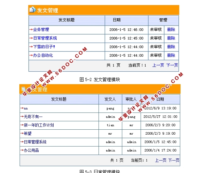 协同办公OA系统的设计与实现(ASP,SQLserver) 来源:wenku7.com 资料编号:WK715428 资料等级:★★★★★ %E8%B5%84%E6%96%99%E7%BC%96%E5%8F%B7%EF%BC%9AWK715428 以下是资料介绍,如需要完整的请充值下载。 1.无需注册登录,支付后按照提示操作即可获取该资料. 2.资料以网页介绍的为准,下载后不会有水印.资料仅供学习参考之用. 密 保 惠 帮助 我要下载该资源 资料介绍 协同办公OA系统的设计与实现(ASP,SQLserver)(任务书,外文翻译,进度计划表,实习调研报告,毕业论文12800字,程序代码,SQLserver数据库,答辩PPT) 协同办公管理系统是一个典型的数据库开发应用程序,由日常管理模块、业务管理模块、用户管理模块组成,规划系统功能模块如下: 1.管理模块 该模块包括收文管理模块、发文管理模块、批示管理模块、会议管理模块、公共信息管理模块、个人办公管理模块、人事管理模块。 2.业务管理模块 该模块包括生产报表模块、采购计划模块、库存管理模块、指标情况模块。 3.用户管理模块 该模块主要包括用户添加模块、用户管理模块、用户注销模块。 4.系统登录模块:主要用于用户登录管理。 5.日常管理模块:主要包括收文管理、发文管理、批示管理、会议管理、公共信息管理、个人办公管理、人事管理7部分。 6.业务管理模块:主要包括生产报表管理、采购计划管理、库存管理、指标情况管理4部分。 7.用户管理模块:主要包括超级用户、普通用户两种登录情况。超级用户包括用户添加、用户修改(所有用户)、用户注销3部分;普通用户包括用户修改用户注销2部分。 各功能模块设计 系统主要包括以下功能模块: 1.系统登录模块:主要用于用户登录管理。 2.日常管理模块:主要包括收文管理、发文管理、批示管理、会议管理、公共信息管理、个人办公管理、人事管理7部分。 3.业务管理模块:主要包括生产报表管理、采购计划管理、库存管理、指标情况管理4部分。 4.用户管理模块:主要包括超级用户、普通用户两种登录情况。超级用户包括用户添加、用户修改(所有用户)、用户注销3部分;普通用户包括用户修改(个人信息进行修改)、用户注销2部分。 开发环境:Dreamweaver 数据库:Microsoft SQL Server 程序:ASP技术 Web服务器:AspWebServer2005 目 录 1 前 言 1 1.1 开发背景 1 1.2 国内外研究现状 1 1.3 系统设计的目标 2 2 系统开发所采用的技术 4 2.1 ASP技术 4 2.2 SQL Server 4 2.3 B/S结构 4 3 协同办公系统需求分析 6 3.1 系统可行性分析 6 3.2 需求分析 6 3.3 功能流程图 7 3.4 功能分析 8 3.5 系统开发环境 9 4 系统总体设计 10 4.1 系统主要功能设计 10 4.2 各功能模块设计 10 4.3 数据库设计 11 4.3.1 关系数据库的基本概念 11 4.3.2 数据库的逻辑结构设计 11 4.3.3 数据库的连接 16 5 系统详细设计与实现 17 5.1 系统登录模块设计 17 5.2 日常管理模块设计 17 5.2.1 发文管理模块 17 5.2.2 收文管理模块 18 5.2.3 会议管理模块 18 5.2.4 人事管理模块 19 5.2.5 批示管理模块 20 5.2.6 个人办公管理模块 20 5.3业务管理模块设计 21 5.3.1 采购计划模块 21 5.3.2生产报表模块 21 5.3.3 库存管理模块 22 5.4 用户管理模块 23 5.4.1 用户的添加 23 5.4.2用户的修改 23 6 系统测试 24 6.1 测试概论 24 6.2 协同办公系统采用的测试方法 24 6.3 协同办公功能测试 25 6.3.1 批示管理测试 25 6.3.2 添加员工测试 27 结 论 30 谢 辞 31 参考文献 32 附 录 33