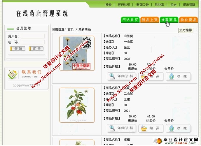 在线药店管理销售网站系统的设计与实现(ASP,Access)(含录像) 来源:wenku7.com 资料编号:WK79812 资料等级:★★★★★ %E8%B5%84%E6%96%99%E7%BC%96%E5%8F%B7%EF%BC%9AWK79812 以下是资料介绍,如需要完整的请充值下载。 1.无需注册登录,支付后按照提示操作即可获取该资料. 2.资料以网页介绍的为准,下载后不会有水印.资料仅供学习参考之用. 密 保 惠 帮助 我要下载该资源 资料介绍 在线药店管理销售网站系统的设计与实现(ASP,Access)(含录像)(毕业论文7000字,程序代码,Access数据库) 本药店管理网站的开发基于asp + access 平台。开发过程中运用了页面模块化、功能模块化、信息发布的动态生成、静态页面显示等基本知识外,论文针对网站的两大部分设计和实现模块进行详细介绍,完成用户前台登录使用,管理员后台管理等功能的实现。 目录 第1章 绪论 1 第2章 相关软件及技术介绍 3 2.1 HTML简介 3 2.2 asp平台简介 3 2.3 JAVA script介绍 3 2.4 Dreamweaver介绍 3 2.5 B/S(Browser/Server)结构 3 第3章 系统简介 12 3.1 系统结构 12 第4章 系统的实现 16 4.1 后台管理系统的实现 16 4.1.1. 连接数据库的包含文件 16 4.1.2 后台管理的控制台 17 4.1.3 添加商品 17 4.1.4 商品信息 19 4.1.5 登陆页面 20 4.1.6 验证管理员是否已经登录的一段代码 21 4.2 前台系统的实现 27 4.2.1 注册页面 27 4.2.2 用户中心页面 30 4.2.3 查询商品模块 31 4.2.4 显示商品详细情况 31 4.2.5 加入购物车 32 4.2.6 形成订单页面 33 4.2.7 订单查询模块 36 第5章 数据库设计 39 5.1 数据库设计理论 39 5.2 系统数据表设计 40 5.3 网站各个系统与数据库的连接实现 40 结束语 41 致谢 41 参考文献 43