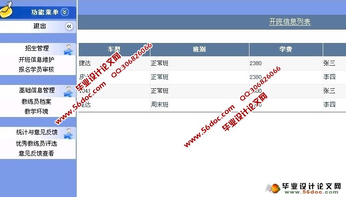 交通集团驾校教育培训中心网站设计与实现(ASP.NET,SQL)(含录像) 来源:wenku7.com 资料编号:WK714608 资料等级:★★★★★ %E8%B5%84%E6%96%99%E7%BC%96%E5%8F%B7%EF%BC%9AWK714608 以下是资料介绍,如需要完整的请充值下载。 1.无需注册登录,支付后按照提示操作即可获取该资料. 2.资料以网页介绍的为准,下载后不会有水印.资料仅供学习参考之用. 密 保 惠 帮助 我要下载该资源 资料介绍 交通集团驾校教育培训中心网站设计与实现(ASP.NET,SQL)(含录像)(毕业论文13400字,程序代码,SQLserver数据库) 系统本系统模块,分别是初学驾驶培训,道路运输从业人员从业资格证培训,职业技能鉴定所,交通集团教育培训中心。 一、交通集团驾驶员培训站 1、初学驾驶培训:大型货车(B2),小型汽车(C1) 驾驶培训的要求(年龄、身体条件、相关的法律法规),我要网上报名、审核、网上缴费、选教练 科目一网上练习做题、模拟考试,科目二、三模拟考试动画 在学学员的追踪,科目一考试情况,科目二考试,科目三考试 教练员档案及相关信息(个人简介、相片、相关资历证书等),教学车辆档案,教学场地,教学设施设备、理论教室等等信息 我们最喜欢的教练员评选,网上投票 对我们工作的建议,意见及反馈处理措施 2、道路运输从业人员从业资格证培训 普通货物运输驾驶员、普通旅客运输驾驶员、危险货物运输从业人员(驾驶员、押运员、仓库管理员) 开班信息,我要报名,网上审核,网上缴费 教员档案及相关信息(个人简介、相片、相关资历证书等) 二、5职业技能鉴定所 汽车驾驶员(专职)、汽车修理工、摩托车修理工职业资格证培训、鉴定 开班信息,我要报名,网上审核,网上缴费 考评员档案及相关信息(个人简介、相片、相关资历证书等) 三、交通集团教育培训中心 1.集团公司内部旅客运输驾驶员的再教育培训 开班信息,我要报名,网上审核、网上缴费 2、集团公司内部人员的其它再教育培训 开班信息,我要报名,网上审核、网上缴费 目 录 第1章 绪论 2 第2章 ASP.NET的开发环境及配置 1 1.1 2.1 IIS 5.0 服务器的配置 1 2.1.1 IIS5.0 新特点 1 2.1.2 在Windows 2000 Professional安装IIS 5.0服务器 2 2.2在Windows 2000 Professional 安装 ASP.NET 2 2.2.1 ASP.NET的优点 3 2.2.2 安装 ASP.NET 4 2.2.3 ASP.NET Web 应用程序的布局 4 2.2.4 Visual Studio.NET 2005介绍 6 2.3 ASP.NET 相关技术 6 2.3.1 Session 对象 6 2.3.2 Web.config配置 7 2.4 B/S模式及其特点 10 第3章 数据库设计 11 3.1 系统的基本目标 11 3.2 总体框架设计 11 3.3 系统的网站需求分析 11 3.4 SQL语言简介 12 3.7通过ADO.NET技术访问数据的技巧 12 3.7.1 ADO和ADO.Net简介 12 3.7.2 数据库访问技术 13 第4章 系统的详细设计 15 4.1 系统总体页面设计 15 4.1.1系统功前台用户功能流程图: 15 4.1.2系统后台管理员功能流程图: 15 4.13前台页面功能实现 16 4.2 登录界面设计 20 4.3 教练员信息 21 4.4学员报名审核 22 4.4.1 开班信息列表 23 设计小结 24 谢 辞 25 参考文献 26