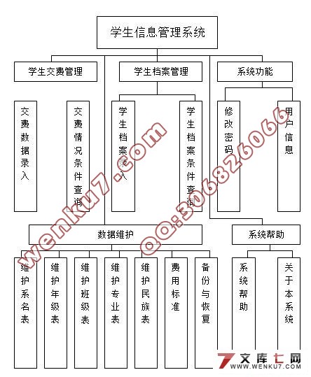 本系统分学生档案、学生交费管理、数据维护、系统功能、系统帮助,五大模块