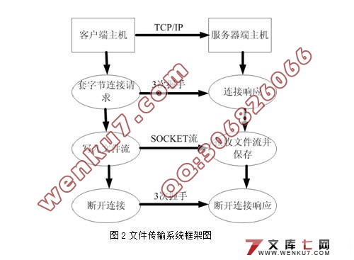 文件传输系统在WINDOWS操作系统下,以C/S的模式客户端主动向服务器端发送SOCKET套节字连接请求后,服务器收到连接请求后对其进行响应并初始化临时内存空间,建立连接。连接建立以后客户端不断地向SOCKET写入传输的文件流,服务器端接收文件流后重组文件并将文件保存到本地目录。文件传输完毕关闭套节字连接。本系统还实现文件夹的传输,能够同时对多个文件进行传输以实现文件夹的共享。
