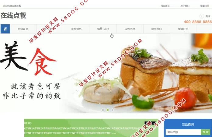 在线订餐系统的设计与实现(前台+后台)(SSM,MySQL)(含录像) 来源:wenku7.com 资料编号:WK715922 资料等级:★★★★★ %E8%B5%84%E6%96%99%E7%BC%96%E5%8F%B7%EF%BC%9AWK715922 以下是资料介绍,如需要完整的请充值下载。 1.无需注册登录,支付后按照提示操作即可获取该资料. 2.资料以网页介绍的为准,下载后不会有水印.资料仅供学习参考之用. 密 保 惠 帮助 我要下载该资源 资料介绍 在线订餐系统的设计与实现(前台+后台)(SSM,MySQL)(含录像)(论文10000字,程序代码,MySQL数据库) 系统功能分析 本系统实现一个在线订餐系统,分为用户和管理员两种用户。具体功能描述如下: 前台用户模块包括: 1. 网站首页:网站打开的第一个页面,显示网站的最新信息。 2. 用户注册/登录:实现用户的注册和登录。 3. 关于我们:实现关于我们的显示。 4. 菜品信息:实现菜品信息的列表显示,点击可以查看菜品信息详情,用户登录后可以编辑购买数量或加入购物车。 5. 销量TOP8:实现销量TOP8的显示。 6. 公告信息:实现公告信息的列表显示,点击可以查看公告详情。 7. 联系我们:实现联系我们的显示。 8. 会员中心:用户登录后可以进入会员中心,在会员中心可以修改自己的资料,修改自己的登录密码,可以查看充值信息,可以对留言信息进行添加、查看、修改或删除,对收藏信息进行付款或删除,对购买信息进行评价,对上菜信息进行评价,对评价信息进行修改或删除。 后台管理员模块包括: 1. 个人信息:管理员可以修改自己的登录密码,可以删除登录日志信息。 2. 网站信息:管理员可以修改关于我们信息,修改联系我们信息,可以对公告信息进行添加、查看、修改或删除。 3. 用户信息:管理员可以查看用户信息,可以对账户进行充值,可以回复用户留言。 4. 菜品信息:管理员可以对菜品种类信息进行添加、查看、修改或删除,对菜品信息进行添加、查看、修改、删除或上传缩略图。 5. 销售信息:管理员可以上菜,可以查看购买信息,可以删除评价信息。 开发环境:MyEclipse 程序语言:Java Web服务器:Tomcat 数据库:MySQL 目录 1 绪论 5 1.1 系统开发目的 5 1.2 系统开发意义 5 2 系统开发工具介绍 6 2.1 JAVA语言 6 2.2 JSP简介 7 2.3 MYSQL简介 8 2.3.1 MYSQL概述 8 2.3.2 MySQL特性 9 2.4 B/S结构 9 2.5 MyEclipse简介 10 3 需求分析与设计 11 3.1可行性分析 11 3.1.1 经济可行性 11 3.1.2 技术可行性 11 3.1.3 运行可行性 11 3.2 系统性能分析 11 3.3 系统功能分析 12 3.4 系统功能结构图 13 3.5 系统流程分析 13 4 数据库设计 16 4.1 数据库逻辑结构设计 16 4.2 数据库物理结构设计 18 5 系统的详细设计与实现 21 5.1 网站首页页面 21 5.2 用户注册页面 21 5.3 菜品信息页面 22 5.4 菜品详情页面 23 5.5 公告信息页面 23 5.6 登录日志信息页面 24 5.7 添加公告信息页面 24 5.8 用户信息页面 24 5.9 用户留言信息页面 25 5.10 菜品种类信息页面 25 5.11 评价信息页面 26 6 系统测试 27 6.1 测试原则 27 6.2 测试目的 28 6.3 测试分类 28 结束语 29 致 谢 30