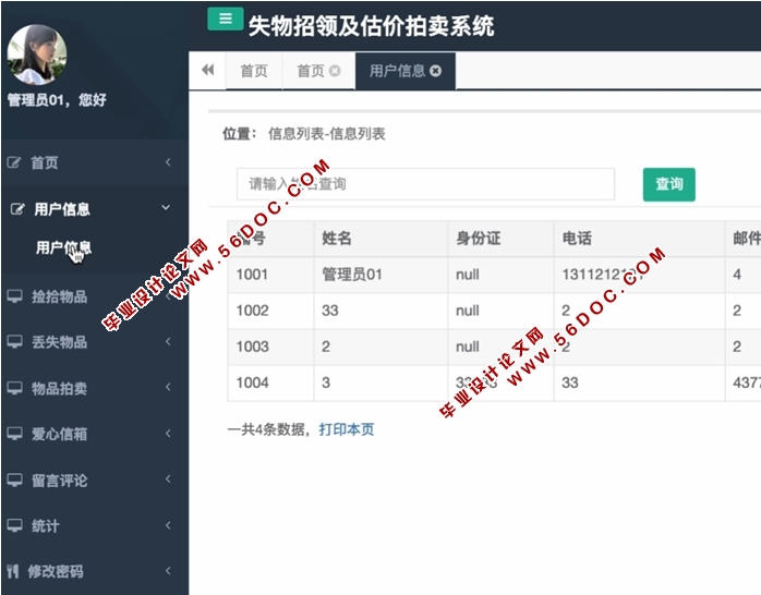失物招领及估价拍卖系统的设计与实现(JSP,MySQL)(含录像) 来源:wenku7.com 资料编号:WK716042 资料等级:★★★★★ %E8%B5%84%E6%96%99%E7%BC%96%E5%8F%B7%EF%BC%9AWK716042 以下是资料介绍,如需要完整的请充值下载。 1.无需注册登录,支付后按照提示操作即可获取该资料. 2.资料以网页介绍的为准,下载后不会有水印.资料仅供学习参考之用. 密 保 惠 帮助 我要下载该资源 资料介绍 失物招领及估价拍卖系统的设计与实现(JSP,MySQL)(含录像)(毕业论文11000字,程序代码,MySQL数据库) 系统功能分析 本系统实现一个失物招领及估价拍卖系统,分为管理员、警务人员和用户三种用户。具体功能描述如下: 管理员模块包括: 1. 用户信息:管理员可以对用户信息进行添加、修改、删除或拉黑。 2. 捡拾物品:管理员可以对已认领捡拾物品信息进行添加、查看、修改、报废或删除,对待认领捡拾物品信息进行添加、查看、修改、报废、拍卖、认领或删除 3. 丢失物品:管理员可以对丢失物品信息进行添加、查看、修改或删除。 4. 物品拍卖:管理员可以可以查看拍卖详情,可以参与报价、可以结束拍卖,可以统计拍卖。 5. 爱心信箱:管理员可以发布留言。 6. 留言评论:管理员可以对留言评论信息进行管理。 7. 统计:管理员可以统计捡拾物品数、认领物品数、拍卖物品数、报废物品数、丢失物品数。 8. 修改密码:管理员可以修改自己的登录密码。 警务人员模块包括: 1. 捡拾物品:警务人员可以对捡拾物品进行添加、查看、修改、报废或删除。 2. 丢失物品:警务人员可以对丢失物品进行添加、查看、修改或删除。 3. 物品拍卖:警务人员可以查看拍卖信息,可以统计拍卖信息。 4. 爱心信箱:警务人员可以发表留言。 5. 留言评论:警务人员可以对留言信息进行管理。 6. 修改密码:警务人员可以修改自己的登录密码。,。 用户模块包括: 1. 捡拾物品:用户可以查看捡拾物品。 2. 丢失物品:用户可以对丢失物品信息进行添加、查看、修改或删除。 3. 物品拍卖:用户可以查看拍卖详情。 4. 爱心信箱:用户可以发表留言。 5. 留言评论:用户可以对留言信息进行管理。 6.修改密码:用户可以修改自己的登录密码。 开发环境:MyEclipse Web服务器:Tomcat 数据库:MySQL 目录 1 绪论 5 1.1 系统开发目的 5 1.2 系统开发意义 5 2 系统开发工具介绍 6 2.1 JAVA语言 6 2.2 JSP简介 6 2.3 MYSQL简介 8 2.4 B/S模式简介 9 3 需求分析与设计 11 3.1 系统需求分析 11 3.1.1 技术可行性 11 3.1.2 经济可行性 11 3.1.3 操作可行性 11 3.2 系统功能分析 12 3.3 系统功能结构图 13 3.4 系统流程分析 13 3.5 系统非功能性需求分析 16 3.6 开发设计思想 17 4 数据库设计 18 4.1 数据库逻辑结构设计 18 4.2 数据库物理结构设计 19 5 系统的详细设计与实现 22 5.1 系统登录页面 22 5.2 用户信息列表页面 22 5.3 捡拾物品信息页面 22 5.4 丢失物品信息页面 23 5.5 添加丢失物品信息页面 23 5.6 物品拍卖信息页面 24 5.7 爱心信箱信息页面 24 5.8 留言评论信息页面 25 5.9 我的拍卖页面 25 5.10 修改密码页面 26 6 系统测试 1 6.1 软件测试的目的 1 6.2 软件测试的基本原则 2 结束语 4 致 谢 5 主要参考文献 6