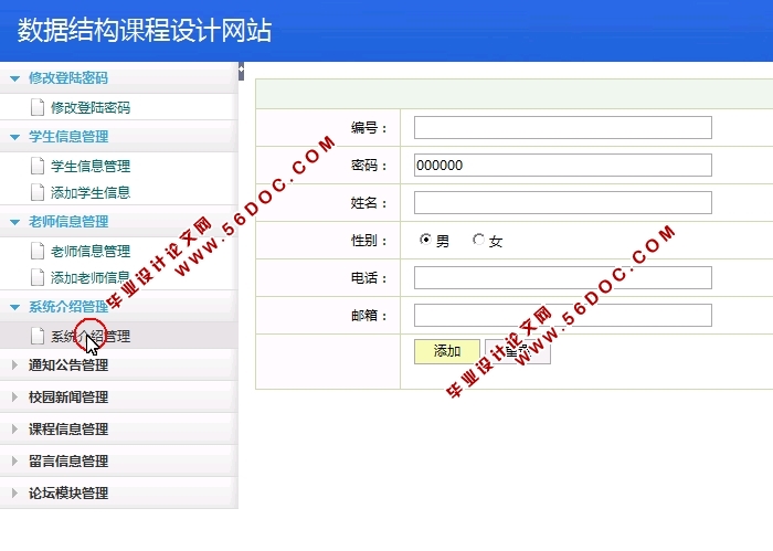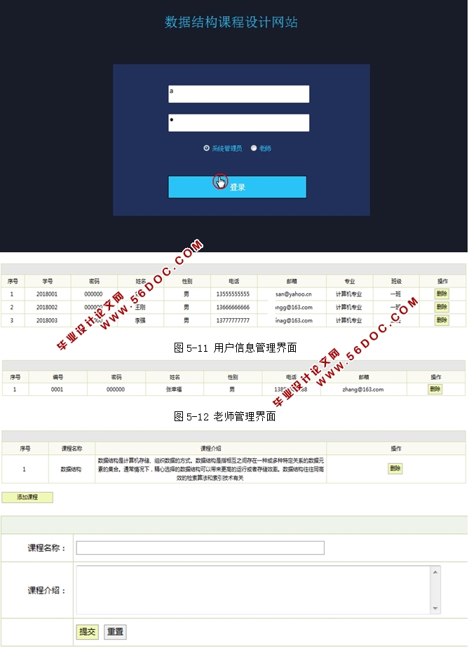 数据结构课程设计网站的设计与开发(JSP,MySQL)(含录像) 来源:wenku7.com 资料编号:WK716054 资料等级:★★★★★ %E8%B5%84%E6%96%99%E7%BC%96%E5%8F%B7%EF%BC%9AWK716054 以下是资料介绍,如需要完整的请充值下载。 1.无需注册登录,支付后按照提示操作即可获取该资料. 2.资料以网页介绍的为准,下载后不会有水印.资料仅供学习参考之用. 密 保 惠 帮助 我要下载该资源 资料介绍 数据结构课程设计网站的设计与开发(JSP,MySQL)(含录像)(毕业论文12000字,程序代码,MySQL数据库) 功能需求分析 本数据结构课程设计网站在功能模块主要分为3大方面,即学生功能模块、老师和管理员功能模块。下面对这两方面进行功能分析: 学生用户:进入前台网站,主要包括系统首页,系统公告信息,用户注册,用户登陆,题目下载。上传课程设计,查看相关的信息。 管理员:系统管理员通过正确的账号密码进行登录系统后台,功能有:个人密码,修改,新闻资讯管理,学生信息管理,系统介绍管理,系统公告管理,老师信息管理等功能模块。 老师:修改个人信息,发布题目,查看学生提交的课程设计,批阅,发布学习资料等 开发环境:MyEclipse Web服务器:Tomcat 数据库:MySQL 目 录 ABSTRACT 1 第一章 概述 1 1.1 研究背景 1 1.2 开发意义 1 1.3 设计思想 1 1.4 设计原则 2 第二章 系统开发理论基础 3 2.1 开发工具 3 2.2 JSP技术 3 2.3 JAVA简介 4 2.4 JavaScript 5 2.5 HTML简介 5 第三章 系统分析 7 3.1需求分析 7 3.1.2 用户需求分析 7 3.1.3 功能需求分析 7 3.1.4 非功能需求分析 8 3.2 可行性分析 8 3.2.1 技术可行性 8 3.2.2 经济可行性 9 3.2.3 操作可行性 9 3.3 系统流程分析 9 3.3.1用户注册 9 3.3.2用户登录 10 第四章 系统设计 11 4.1 系统功能模块图 11 4.2 系统架构设计 11 4.3数据库设计 11 4.3.1 数据库设计原则 12 4.3.2 数据库概念设计 12 4.3.3 数据库表设计 12 第五章 系统的实现 14 5.1 网站主界面 14 5.1.1 用户注册功能 15 5.1.2 学生个人中心 16 5.2后台登录界面 16 5.3 管理员主界面 17 5.3.1修改密码界面 17 5.3.2学生信息管理 17 5.3.3老师信息管理 18 5.3.4课程信息管理 18 5.3.5系统公告管理 19 5.3.6系统介绍管理 20 第六章 系统测试 21 6.1系统测试目的与意义 21 6.2 系统功能测试 21 6.3 系统测试过程 21 6.4 系统性能测试 22 6.5 测试结果分析 22 总 结 23 参考文献 24 致 谢 26