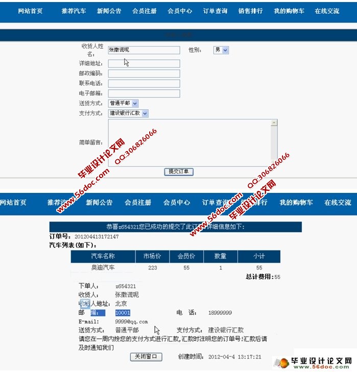 网上汽车销售系统的设计与实现(PHP,MySQL)(含录像) 来源:wenku7.com 资料编号:WK714047 资料等级:★★★★★ %E8%B5%84%E6%96%99%E7%BC%96%E5%8F%B7%EF%BC%9AWK714047 以下是资料介绍,如需要完整的请充值下载。 1.无需注册登录,支付后按照提示操作即可获取该资料. 2.资料以网页介绍的为准,下载后不会有水印.资料仅供学习参考之用. 密 保 惠 帮助 我要下载该资源 资料介绍 网上汽车销售系统的设计与实现(PHP,MySQL)(含录像)(开题报告,论文14000字,程序代码,MySQL数据库) 该系统主要实现了产品搜索、用户评论、在线购买等前台模块与产品管理、用户管理、订单管理等后台模块。通过科学全面的测试,系统实现了汽车销售和在线购物的主要功能。汽车销售系统做为现有电子商务和在线购物模式的重要补充,在实际的应用中必将显现其突出的优势。 本系统所具有的基本功能模块主要包括查询、购买、留言、用户管理、产品管理、留言管理和订单管理等,除了以上基础模块,在开发过程中还开发了一些相关的模块来补充和完善整个系统,以期获得更好的效果。 论文总页数:28页 1 引言 1 1.1 系统的开发背景 1 1.1.1 网上购物的发展 1 1.1.2 汽车销售系统的现状 1 1.2 系统实现的目标 1 1.3 系统开发的意义 2 2 汽车销售系统分析 2 2.1 网站的设计目标 2 2.2 网站的可行性分析 2 2.2.1 用户群体与市场分析 2 2.2.2 技术能力分析 2 2.2.3 可行性分析总结 3 2.3 网站设计的特点 3 3 系统的开发技术及主要构架 3 3.1 开发技术的选择 3 3.1.1 PHP编程技术 3 3.1.2 MySQL开源数据库的开发 4 3.2 系统的主要架构及开发模式 4 3.2.1 基于B/S的体系结构 4 3.2.2 OOP(面向对象编程)在PHP中的运用 4 4 系统的功能和流程分析 5 4.1 平台功能模块的设计分析 5 4.2 系统流程分析 5 4.2.1 前台购物流程 5 4.2.2 注册登录功能流程 6 4.2.3 商品搜索流程 7 4.2.4 留言评论流程 7 4.2.5 商品管理流程 7 4.2.6 订单处理流程 7 4.2.7 用户管理流程 7 5 系统功能的具体实现 8 5.1 系统数据库的设计 8 5.2 功能总体说明 11 5.2.1 系统流程图 11 5.2.2 目录结构说明 11 5.3 各功能模块的实现 12 5.3.1 数据库的连接 12 5.3.2 用户注册与审核模块 13 5.3.3 用户登录模块的实现 14 5.3.4 商品搜索模块的实现 16 5.3.5 购物车模块的实现 16 5.3.6 产品管理模块的实现 17 5.3.7 用户管理与权限的实现 20 5.3.8 订单与评论管理 22 5.3.9 系统数据管理 23 6 系统测试及难点分析 23 6.1 系统运行环境的搭建 23 6.2 系统程序的安装 24 6.3 系统的测试 24 6.3.1 系统关键部分测试分析 24 6.3.2 测试结果分析与说明 25 6.3.3 系统安全与性能分析 25 6.4 系统中存在的问题及解决方法 25 结 论 25 参考文献 26 致 谢 27 声 明 28