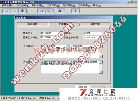 摘要 随着经济全球化、管理现代化的到来,信息化建设已提到日程,国家机关、高等院校参与国际竞争的大中型企业单位,为了提高现代化管理水平、为了在激烈的市场竞争中获胜,纷纷不同程度地加强信息化建设,人事管理工作也变的越来越烦琐,本系统针对公司管理层对员工如何有效的管理,本系统主要实现了系统设置、员工档案、考勤管理、工作评价、员工调动、工资管理等功能。本程序前台采用Visual Basic ,后台由Access数据库支持,通过使用VB语言实现操作功能,达到对数据库的操作以完成使用者的要求。本文中除了有对程序的总体设计、详细设计、功能实现等主体部分外,在这之前还介绍了与恒信达科技公司人事管理系统相关的信息管理系统、网络编程技术、VB编程语言、Access数据库服务器等的基本内容及发展情况。本系统结合公司实际的人事、财务制度,经过实际的需求分析,采用功能强大的Visual Basic6.0作为开发工具而开发出来的单机版人事管理系统。 整个系统从符合操作简便、界面友好、灵活、实用、安全的要求出发,完成人事、工资管理的全过程,包括新进员工加入时人事档案的建立、老员工的转出、职位等的变动引起职工信息的修改、员工信息查询、统计等人事管理工作以及新进员工工资的新增、老员工工资修改、存盘、工资短信等工资管理工作。经过实际使用证明,本文所设计的人事管理系统可以满足公司人事、工资管理等方面的需要。