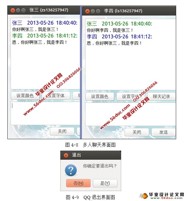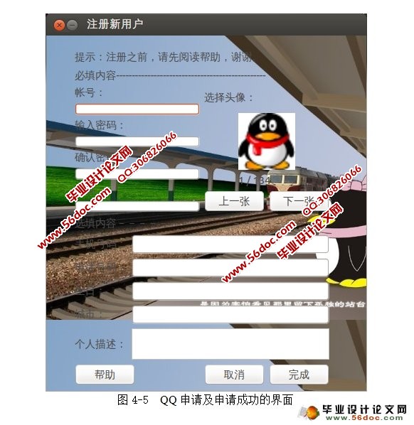 局域网OICQ通信通讯设计与实现(Linux,Socket) 来源:wenku7.com 资料编号:WK714076 资料等级:★★★★★ %E8%B5%84%E6%96%99%E7%BC%96%E5%8F%B7%EF%BC%9AWK714076 以下是资料介绍,如需要完整的请充值下载。 1.无需注册登录,支付后按照提示操作即可获取该资料. 2.资料以网页介绍的为准,下载后不会有水印.资料仅供学习参考之用. 密 保 惠 帮助 我要下载该资源 资料介绍 局域网OICQ通信通讯设计与实现(Linux,Socket)(任务书,开题报告,中期检查表,文献综述,外文翻译,毕业论文12400字,程序代码) 本系统采用客户机/服务器架构模式通过C提供的Socket类来连接客户机和服务器并使客户机和服务器之间相互通信,服务器端设计与实现过程中,采用了多线程技术,可以在单个程序当中同时运行多个不同的线程,执行不同的任务。 聊天系统完成后将可进行多人对多人的聊天,对好友进行添加、删除,对新用户的注册,发送消息、接受消息等功能。该系统并不受限于网络,一台没有连接外网的计算机便可完成操作,服务器端采用固定环回IP的方式,来使客户端对服务器端进行绑定,客户端登录需要及时得到服务器端的端口信息,从而实现客户端的绑定。当启动一次服务器端程序后,便可连续打开多个客户端程序,从而完成整个系统的操作。 系统功能需求 本系统主要通过客户端,服务器端来体现聊天系统的基本功能[6]。 1.服务器端 (1).处理用户注册 (2).处理用户登录 (3).处理用户发送信息,服务器监控聊天内容,服务器过滤非法内容 (4).处理用户得到信息 (5).处理用户退出 2客户端 (1).用户注册界面及结果 (2).用户登录界面及结果 (3).用户发送信息界面及结果 (4).用户得到信息界面及结果 (5).用户退出界面及结果 目 录 摘 要 I Abstract II 1 绪论 1 1.1 国内外聊天系统的研究现状 1 1.2 C/C++语言 2 1.2.1 C/C++的发展历史 2 1.2.2 C++的特点 2 1.2.3 C++ 与Internet 3 1.3 Socket编程 4 1.3.1 关于TCP/IP协议 4 1.3.2 服务器和客户机 5 1.4本文内容安排 5 2 需求分析 6 2.1 可行性研究 6 2.1.1 可行性分析 6 2.1.2 系统功能需求 6 2.1.3 系统性能需求 7 2.1.4 系统运行需求 7 2.2 数据流图 8 2.2.1 顶层数据流图 8 2.2.2 一层数据流图 8 2.2.3 二层数据流图 9 3 概要设计 10 3.1 系统实现原理 10 3.2 系统实现流程图 11 3.3 各模块详细功能 12 3.3.1 服务器端结构 12 3.3.2 客户端结构 12 4 详细设计 14 4.1 系统流程图 14 4.1.1 系统总体流程图 14 4.1.2 系统客户端流程图 15 4.2 编写服务器端程序 15 4.2.1 问题陈述 15 4.2.2 解决方案 16 4.3 客户端程序编写 23 4.3.1 客户端注册 23 4.3.2 用户登录 24 4.3.3 聊天室 25 结束语…….31 致谢 32 参考文献 33