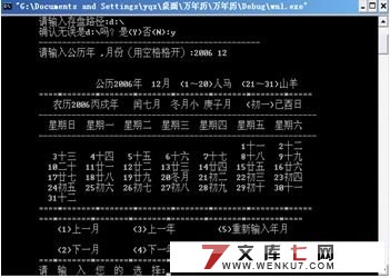 3. 算出输出月份第一天为星期几的算法:算出输出月份第一天为星期几后,把该日期以前的位置用空格补上,并总该日起一次输出天数直到月底,该月中的天数加上该月一日为星期几的数字再除以7得0换行,即可完整的输出该月的日历。