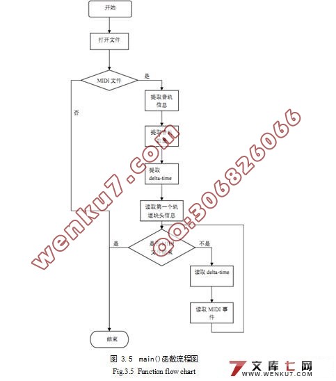 此程序,本软件的是现是 C 语言结构体、指针以及 Windows API 的综合应用。在文件分析部分通过设计函数,从头到尾逐步分析,首先提取头块信息,然后对第一个轨道块特殊处理,因为这个块紧接着头块没有什么标志,而对于轨道块的处理,要通过分析读取的数据,每个时间之前必有一个 Delta-time,所以首先处理 Delta-time,判断是由几个字节组成,对于读取的事件要分析事件的类型,分别处理,在函数传递过程中要保证文件指针和存取的信息的一致性。