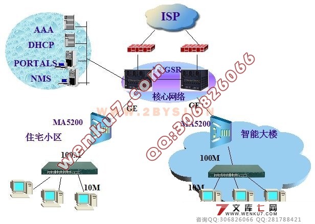 | 中国进入了信息产业迅猛发展的时期,除了传统的运营商中国电信之外,以网通、联通公司为代表的新运营商随之出现,正在分享信息产业所蕴含的巨大商机。巨大的商机意味着激烈的竞争,这种形势迫切地要求中国各类电信公司不断的探索网络演进方式、优化网络发展模式、建设和发展网络设施,以提升自身的市场竞争力。近年来信息技术的飞速发展及技术成本的持续下降,以IP为代表的数据业务爆长,网络的带宽和容量再次成为热门话题和紧缺商品。在中国,无论新老运营商,谁最先建立起宽带网络,为用户提供丰富的业务,谁就会在激烈的竞争中占据有利的地位。 目前中国电信的全国互连骨干IP网已建成,并在不断的提速和优化。许多省市或大型城市的电信分公司都在计划建设营运级宽带IP城域网,这些网络将进一步相互演化成为未来的国家信息基础设施(NII)的网络主体。宽带城域网的建设成为各地电信公司所面临的一个重要课题。 ![]() ![]() 目 录 一、概述 3 二、组网方案 3 2.1 整体网络方案 3 2.2 IP地址规划原则 5 2.3 IP骨干网络结构 5 2. 4 IP接入层网络结构 6 三、业务平台与业务实现 8 3.1 数据中心 8 3.2 门户业务 8 3.3 小区信息中心 9 四、网络管理平台 11 4.1 网络结构 11 4.2 网络管理功能 11 (毕业设计) 五、网络设备介绍 12 5.1 MA5200 12 5.2 S2403F 16 |