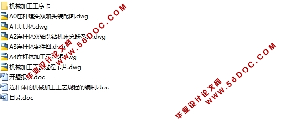 连杆体的机械加工工艺规程的编制(含CAD零件图装配图,工艺卡) 来源:wenku7.com 资料编号:WK718951 资料等级:★★★★★ %E8%B5%84%E6%96%99%E7%BC%96%E5%8F%B7%EF%BC%9AWK718951 以下是资料介绍,如需要完整的请充值下载。 1.无需注册登录,支付后按照提示操作即可获取该资料. 2.资料以网页介绍的为准,下载后不会有水印.资料仅供学习参考之用. 密 保 惠 帮助 我要下载该资源 资料介绍 连杆体的机械加工工艺规程的编制(含CAD零件图装配图,工艺卡)(开题报告,论文说明书6500字,CAD图纸6张,机械加工工艺卡) 2.1.1零件的作用 本零件的作用是用来连接和传递运动和动力的,且精度要求较高。 2.1.2零件的工艺分析 由零件图可知,主要加工表面有: (1).尺寸55上表面 (2).尺寸27左表面 (3).38的前后表面 (4).∮70的半圆孔 (5).基准面1 (6).基准面2 (7).基准面3 各表面的相互位置精度要求有: (1).孔2—∮10.2对尺寸55上表面的垂直度公差为∮0.05; (2).∮70的同轴度公差为0.005㎜; (3).连杆体应该经过调质处理,硬度为217~293HB; 由上述可知,各加工表面以尺寸55上表面、38前后表面为主,有较高的尺寸精度和较高的相互位置尺寸精度要求,因此,拟订55上表面、38前后表面为主的工艺方案。为了保证各表面的相对位置精度要求,应以基准1、基准2、基准3为定位基准,便于实现基准重合和基准统一。 2.1.3零件毛坯的选择 零件材料为45钢,考虑到零件的经济性和综合性能要求,可选择铸件,可以保证加工精度要求。 目录……………………………………………………………………1 序言……………………………………………………………………2 第一章 课题简介…………………………………………………………3 第二章 设计内容…………………………………………………………4 2.1零件分析………………………………………………………………4 第三章 制定加工工艺路线………………………………………………6 第四章 机械加工余量,工序尺寸及毛坯尺寸的确定…………………9. 第五章 确定切削用量及基本工时……………………………………10. 5.1工序III………………………………………………………………10 5.2工序IV…………………………………………………………………13 5.3工序V……………………………………………………………………13 5.4工序VI…………………………………………………………………15 5.5工序VII………………………………………………………………16 5.6工序VIII……………………………………………………………17 5.7工序X…………………………………………………………………19 5.8工序IX………………………………………………………………20 第六章 夹具设计………………………………………………………22 6.1问题的提出……………………………………………………………22 6.2定位误差分析…………………………………………………………24 6.3夹具设计及操作简要说明……………………………………………25 总结…………………………………………………………………………27 参考文献……………………………………………………………………28
