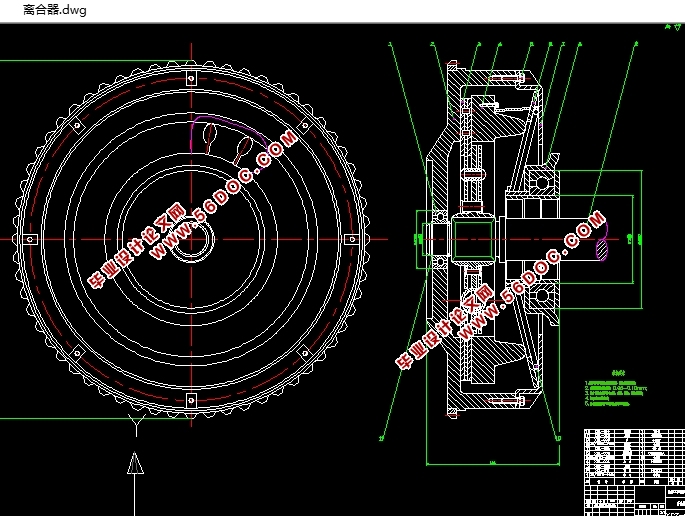 拉式膜片弹簧离合器设计(含CAD零件图装配图) 来源:wenku7.com 资料编号:WK717805 资料等级:★★★★★ %E8%B5%84%E6%96%99%E7%BC%96%E5%8F%B7%EF%BC%9AWK717805 以下是资料介绍,如需要完整的请充值下载。 1.无需注册登录,支付后按照提示操作即可获取该资料. 2.资料以网页介绍的为准,下载后不会有水印.资料仅供学习参考之用. 密 保 惠 帮助 我要下载该资源 资料介绍 拉式膜片弹簧离合器设计(含CAD零件图装配图)(论文说明书15000字,CAD图纸8张) 该方案是拉式膜片弹簧离合器设计,介绍离合器结构设计的要点: 在进行离合器的具体设计时,首先应保证传递发动机最大扭矩为前提,然后满足下列条件[15]: (1)扇形波状弹簧对置分布铆接在从动钢片上,并在从动盘上设置扭转减震器保证离合器接合柔和,摩擦片制成一定锥度(从动盘锥形量约为0.5mm)使其大端面向飞轮,这样从动盘毂在从动轴(即变速器第一轴)花键上易于滑动,有利于离合器彻底分离。 (2)离合器主动部分与从动部分的连接和支撑形式,离合器的主动部分包括飞轮,离合器盖与他们一起转动并能轴向移动的压盘,压盘通过钢片与离合器盖相连,离合器从动部分有从动盘,从动轴,从动轴装在飞轮与压盘之间,可在从动轴花键上滑动,设计时把离合器从动轴的前轴承安装在发动机曲轴的中心孔内。 (3)离合器从动轴的轴向定位及轴承润滑,离合器从动轴在安装后应保持轴向定位,在拆卸时便于离合器中抽出来。因此,设计时使从动轴前轴承外圆与飞轮为过渡配合,而前轴承内圈与从动轴为间隙配合,离合器的从动轴轴向定位是靠从动轴后轴承来保证的。离合器分离轴承靠注入黄油润滑的,而从动轴前轴承靠油杯定期注入润滑。 为防止润滑油流到摩擦衬面,造成离合器打滑,除在轴承处安有自紧油封外,还在飞轮上开泄油孔。 (4)离合器运动零件的限位,离合器处于接合时为使压盘与摩擦片很好接合,应使分离弹簧与分离轴承之间保持一定间隙,这是分离轴承回位弹簧加以保证。分离时,应对踏板的最大行程加以限制。 拉式膜片弹簧离合器的优点: 与推式相比,拉式膜片弹簧离合器具有许多优点:取消了中间支承各零件,并不用支承环或只用一个支承环,使其结构更简单、紧凑,零件数目更少,质量更少;拉式膜片弹簧是中部与压盘相压在同样压盘尺寸的条件下可采用直径较大的膜片弹簧,提高了压紧力与传递转矩的能力,且并不增大踏板力,在传递相同的转矩时,可采用尺寸较小的结构;在接合或分离状态下,离合器盖的变形量小,刚度大,分离效率更高;拉式的杠杆比大于推式的杠杆比,且中间支承减少了摩擦损失,传动效率较高,踏板操纵更轻便,拉式的踏板力比推式的一般可减少约;无论在接合状态或分离状态,拉式结构的膜片弹簧大端与离合器盖支承始终保持接触,在支承环磨损后不会形成间隙而增大踏板自由行程,不会产生冲击和哭声;使用寿命更长。 离合器工作原理 摩擦离合器一般是有主动部分、从动部分组成、压紧机构和操纵机构四部分组成。 离合器在接合状态时,发动机扭矩自曲轴传出,通过飞轮2和压盘借摩擦作用传给从动盘3,在通过从动轴传给变速器。当驾驶员踩下踏板时,通过拉杆,分离叉、分离套筒和分离轴承8,将分离杠杆的内端推向右方,由于分离杠杆的中间是以离合器盖5上的支柱为支点,而外端与压盘连接,所以能克服压紧弹簧的力量拉动压盘向左,这样,从动盘3两面的压力消失,因而摩擦力消失,发动机的扭矩就不再传入变速器,离合器处于分离状态。当放开踏板,回位弹簧克服各拉杆接头和支承中的摩擦力,使踏板返回原位。此时压紧弹簧就推动压盘向右,仍将从动盘3压紧在飞轮上2,这样发动机的扭矩又传入变速器。 目录 第1章 绪 论 2 1.1选题的目的 2 1.2离合器发展历史 2 1.3离合器概述 3 1.3.1 离合器的功用 3 1.3.2 现代汽车离合器应满足的要求 4 1.4 设计的预期成果 6 第2章 离合器的结构设计 6 (3) 径向传动片驱动方式:它用弹簧钢制的传动片将压盘与离合器盖连接在一起,除传动片的布置方向是沿压盘的弦向布置外,其他的结构特征都与径向传动驱动方式相同。经比较,我选择径向传动驱动方式。 7 2.1.6 从动盘总成 8 (3)应装扭转减振器,以避免传动系共振,并缓和冲击。 8 1、摩擦片要求 8 2、从动盘的轴向弹性 8 3、扭转减震器 8 第3章 离合器的设计计算及说明 11 3.1 离合器设计所需数据 11 3.2 摩擦片主要参数的选择 11 ( 11 3.4 膜片弹簧主要参数的选择 15 (5)膜片弹簧的分离指起分离杠杆的作用,,因此杠杆比应在一定范围内选取,即 17 推式: 18 拉式: 18 由(4)和(5)得mm,mm。 18 3.6膜片弹簧的载荷与变形关系 18 H——膜片弹簧在自由状态时,其碟簧部分的内锥高度 18 (3.12) 19 膜片弹簧工作点位置的选择。从膜片弹簧的弹性特性曲线图分析出,该曲线的拐点H对应着膜片弹簧压平位置,而。新离合器在接合状态时,膜片弹簧工作点B一般取在凸点M和拐点H之间,且靠近或在H点处,一般,以保证摩擦片在最大磨损限度Δλ范围内压紧力从F1B到F1A变化不大。当分离时,膜片弹簧工作点从B变到C ,为最大限度地减小踏板力,C点应尽量靠近N点。为了保证摩擦片磨损后仍能可靠的传递传矩,并考虑摩擦因数的下降,摩擦片磨损后弹簧工作压紧力应大于或等于新摩擦片时的压紧力,见图3.3。3.7膜片弹簧的应力计算 20 图3.3 膜片弹簧工作点位置 21 e ——碟簧部分子午