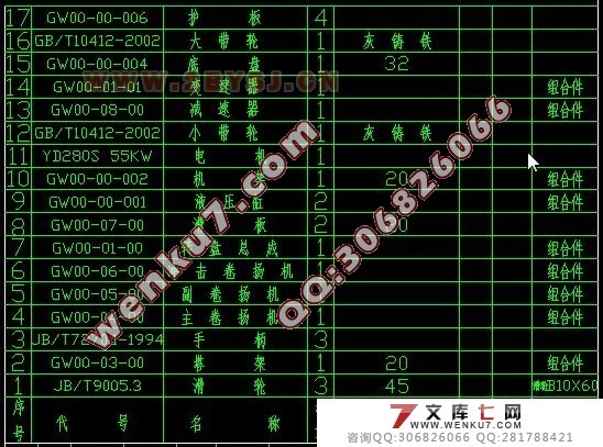 主要设计参数 1. 冲击卷扬机 提升能力 (kN) 60 提升速度 (m/s) 0.4 .05 0.6 2. 冲击行程 (m) 0.5—4 3. 冲击次数 (1/min) 6—14 4. 冲锤质量 (kg) 3000—5000 5. 主、副卷扬机 提升能力 (单绳kN) 30 卷绳速度 (m) 0.45, 0.68, 1.13, 1.69 0.31, 0.46, 0.77, 1.15 6. 转盘转速 (r/min) 13, 17, 21, 26, 42, 52 7. 主机动力型号(功率) YD280S 55 KW (1480 r/min ) 8. 钻塔额定负载 ( kN) 180 9. 空压机型号( 排量,压力) UB 300—500 (3.55 /min, 0.8 MP) 10. 配备砂石泵型号(型号) 6BS (180 /h) 或8BS(340 /h) 11. 外型尺寸 (长X宽X高) 10000X2400X1700 12. 重量 主机重量 (t) 10.4 全套设备总重 (t) 28