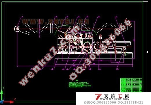 总体布局设计 钻机由底座、传动装置、减速器(分动箱)、主副卷扬机、冲击卷扬机、转盘、钻塔、气动系统、电气系统、工具系统组成。