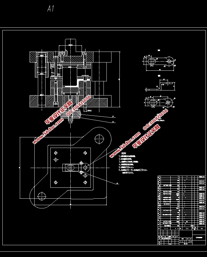 Z形件弯曲模具设计(含CAD零件图装配图) 来源:wenku7.com 资料编号:WK714827 资料等级:★★★★★ %E8%B5%84%E6%96%99%E7%BC%96%E5%8F%B7%EF%BC%9AWK714827 以下是资料介绍,如需要完整的请充值下载。 1.无需注册登录,支付后按照提示操作即可获取该资料. 2.资料以网页介绍的为准,下载后不会有水印.资料仅供学习参考之用. 密 保 惠 帮助 我要下载该资源 资料介绍 Z形件弯曲模具设计(含CAD零件图装配图)(论文说明书12800字,CAD图纸10张) 摘 要 本文主要进行Z形件的弯曲模具设计。通过对Z形零件进行工艺分析,确定了弯曲工艺方案及模具结构形式,然后对模具进行总体设计,接下来是对模具设计进行基本参数计算,在设计过程中计算了弯曲件坯料尺寸、最小弯曲半径、卸载后的回弹、自由弯曲时的弯曲力、校正力等。介绍了Z形件弯曲模具的整体设计过程,并分析和阐述了模具凸、凹模零件及各标准件的选材及选用原则和方法、零件的尺寸公差和精度的选择、以及压力机的选择和校核。采用AutoCAD软件绘制了Z形件弯曲模具的装配图和非标准零件图,并撰写了毕业设计说明书。 关键词:弯曲模具;Z形件;设计 弯曲工艺性分析 工件图2-1所示Z形弯曲件。弯曲件的工艺性是指弯曲件的形状、尺寸、材料的选用及技术要求等是否满足弯曲加工的工艺要求。具有良好冲压工艺性的弯曲件,不仅能提高工件质量,减少废品率,而且能简化工艺和模具结构,降低材料消耗。该弯曲件是直接由工序件弯曲而来,仅有弯曲一道工序,外形简单,尺寸精度要求不高,用途广泛。有利于零件的弯曲加工,但零件两处弯曲方向不同,在弯曲过程中坯料易因受力不平衡而产生滑移,所以弯曲时应有一定的凸凹模间隙。弯曲过程中影响弯曲件的因素很多,良好的冲裁弯曲工艺性应保证工件形状尺寸、公差等级要求和材料性能等。本次设计制件其工艺分如下: 名称:Z形弯曲件 材料:H68 厚度:5.00mm 生产批量:30万件/年 2.1 材料分析 材料为H68普通黄铜,具有良好的塑性和较高的强度,加工性能好,易焊接具有良好的弯曲成形性能。抗拉强度 ≥370MPa,为普通黄铜中应用最广泛的品种。宜于制作各种弯曲件。 2.2 结构分析 该工件外形结构较为简单、呈Z形状、尺寸精度要求不高,定位较为容易,且定位精度易保证。此工件可采用一次弯曲成形。工件厚度为t=5mm,宽度b=25mm,属于大批生产,无尖角,对冲压弯曲较为有利。属于普通弯曲件。 目 录 1 绪论 1 2 弯曲工艺性分析 3 2.1 材料分析 4 2.2 结构分析 4 2.3 精度分析 4 3 模具总体结构分析 5 3.1 模具类型的选择 5 3.2 送料方式的选择 6 3.3 定位方式的选择 6 3.4 卸料方式的选择 7 3.5 出件方式的选择 8 3.6 导向方式的选择 8 4 主要工艺参数计算 10 4.1 弯曲件展开尺寸计算 10 4.2 弯曲力计算 11 4.2.1 自由弯曲力的计算 11 4.2.2 校正弯曲的弯曲力计算 12 4.3 弯曲回弹值的确定 13 4.4 压力机公称压力的确定 13 5 工作部分尺寸计算 14 5.1 弯曲凸模和凹模的圆角半径 14 5.1.1 弯曲凸模的圆角半径 14 5.1.2 弯曲凹模的圆角半径 14 5.2 弯曲凹模深度尺寸 14 5.3 弯曲凹模周界尺寸 15 5.4 弯曲凹、凸模间隙 16 5.5 弯曲凸、凹模宽度尺寸 16 6 主要零部件的设计 19 6.1 凹模设计 19 6.1.1 凹模外形的确定 19 6.1.2 凹模材料的确定 19 6.1.3 凹模精度的确定 19 6.2 凸模设计 20 6.2.1 凸模外形的确定 20 6.2.2 凸模材料的确定 20 6.2.3 凸模精度的确定 20 6.3 定位零件的选用 21 6.4 垫板的设计 21 6.5 凸模固定板的设计 22 6.6 卸料装置的选定 23 6.7 推件装置的选定 24 6.8 模柄的选定 25 6.9 上、下模座的选用 26 7 冲压设备的校核与选定 27 7.1 冲压设备的主要参数校核 27 7.2 冲压设备的确定 27 7.3 压力机的确定 27 8 模具结构简述 28 结论 29 致谢 30 参考文献 31 附表 J23系列开式可倾压力机主要技术参数 32
