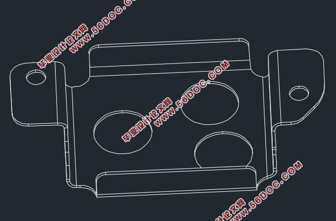 零件上有三个半径9mm大孔、两个半径3mm小孔冲孔完成。两侧二次折弯、前后折弯成型,与主体面成90度角。该零件厚度为1mm,零件形状不规则,由圆弧和直线组成,尺寸中等孔边距足够大,无尖角过渡,结构工艺性良好,根据上述零件特征适合采用冲压成形。