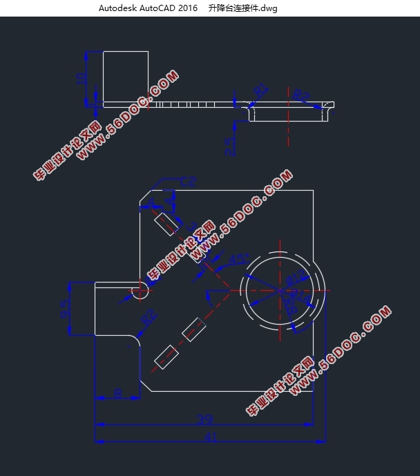 升降台连接件级进模设计:如图2.1所示的是升降台连接件零件图,材料为08钢,厚度为1mm,结构不对称,形状不复杂,大批量生产。