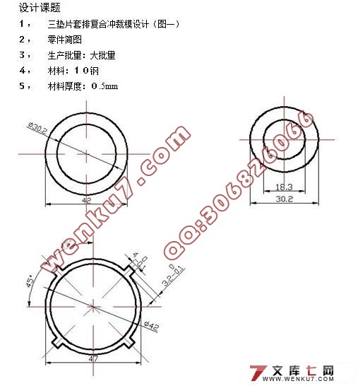 1、设计三垫片套排复合冲裁模的结构形状总体方案。