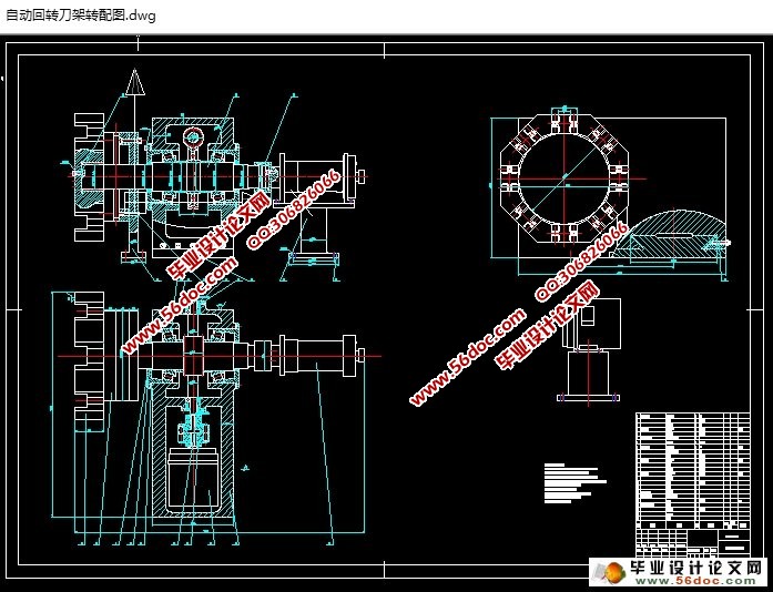 本次毕业设计的题目是数控车床自动回转刀架设计。通过编程实现对刀架精确回转的控制,使下道工序所需的工具快速准确地到达预定位置,满足数控自动加工系统的要求。