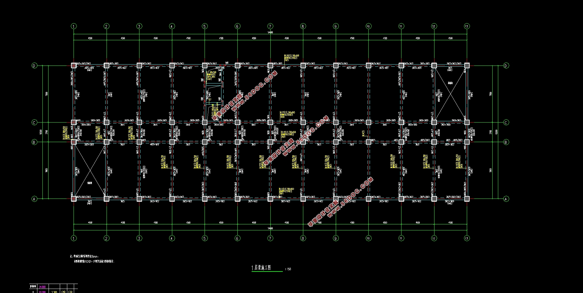 结构设计包括框架设计、构件设计和基础设计等,其中,框架采用钢筋混凝土纵横向框架承重布置方案,基础采用钢筋混凝土柱下独立基础和双柱联合基础。