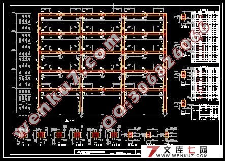 结构施工图:结构平面布置图、板配筋图、一榀框架配筋图、基础平面及配筋图。