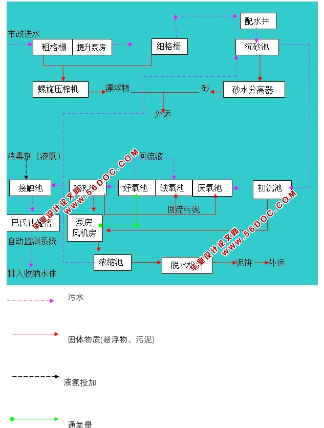 (1)调查该城镇生活污水来源、排放量、水质状况等特点;根据该城镇污水状况以及排放处理要求进行污水处理厂设计,主要包括污水处理工艺参数计算、工艺比较等;