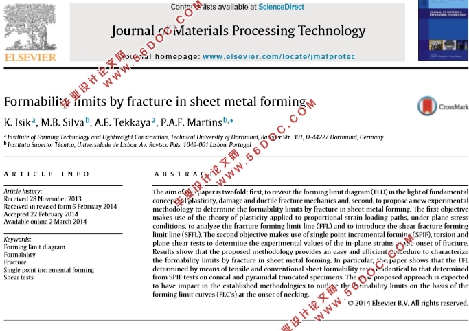 关键词:成形极限图、可成形性、断裂、单点增量成形、剪切试验