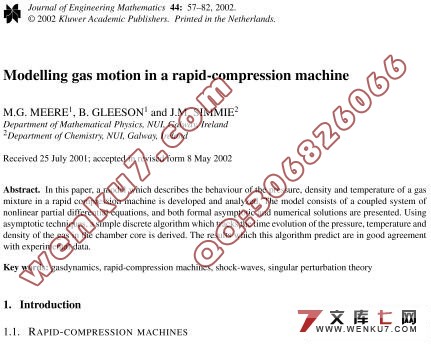 一种快速压缩机器设备用来研究自燃的气体混合物在高压和高温条件下,尤其是在自动点火内燃机 中(见[ 1-3 ])。一个典型的内燃机处于一个非常肮脏的和复杂的环境中, 这也促使压缩机器的科学研究朝更清洁和更简单的设置方向着快速发展。