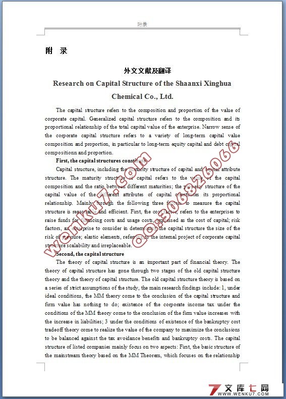 陕西兴化股份有限公司资本结构研究(会计学,含外文出处)(中文2800字,英文1700字)