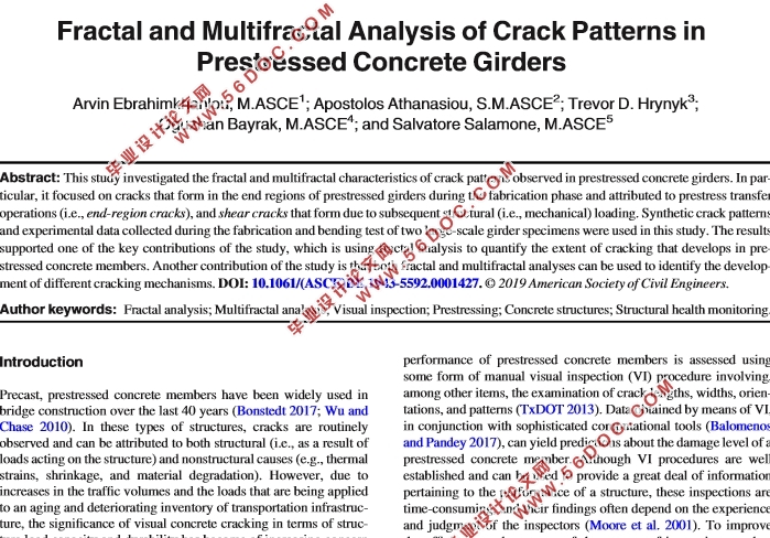 关键词:分形分析;多重分形分析;视力检查;预应力;混凝土结构;结构健康监测。